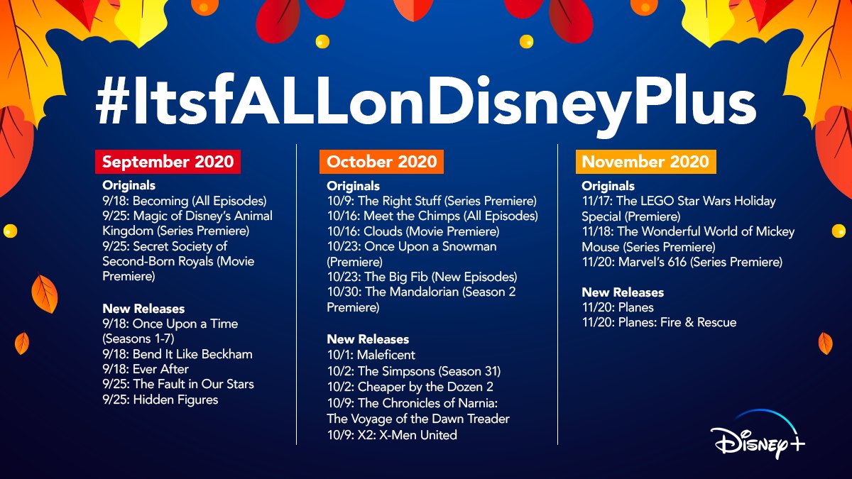 Every new movie and tv show coming in october 2020. Some of the programming fans can look forward to streaming on disney in october includes season 2 of the mandalorian the premiere of the right stuff national geographics meet the chimps season 31 of the simpsons and much much more. Disney plus has already launched in the us and many other countries with more to be added in the coming months.